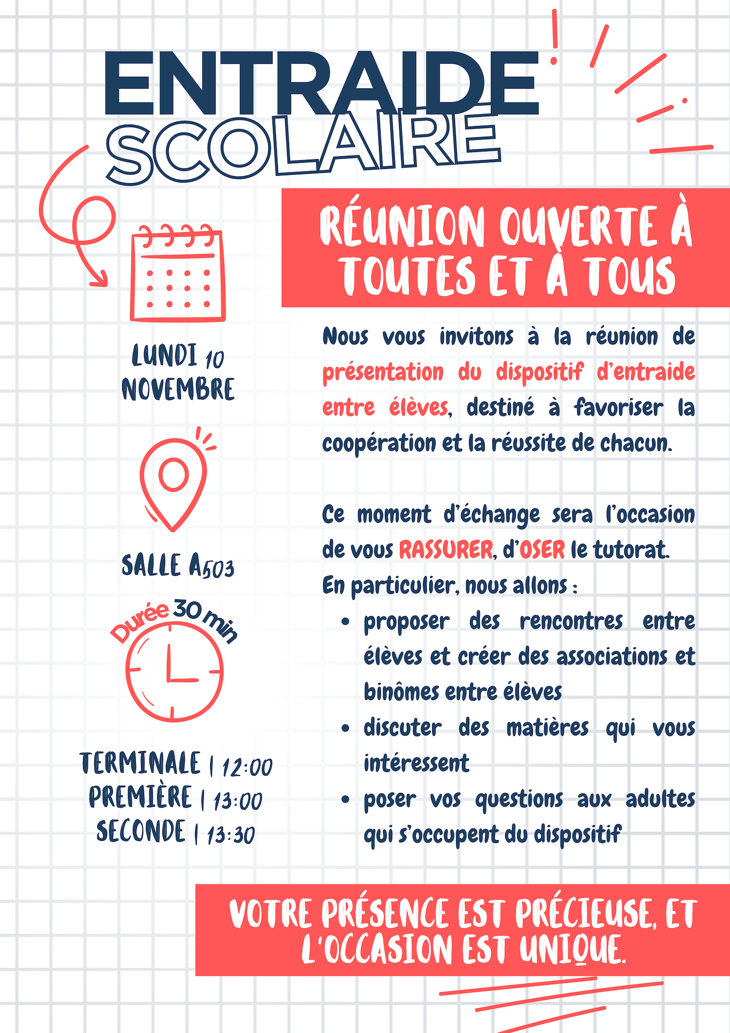 Entraide scolaire | Réunion d'information ouverte à toutes et à tous